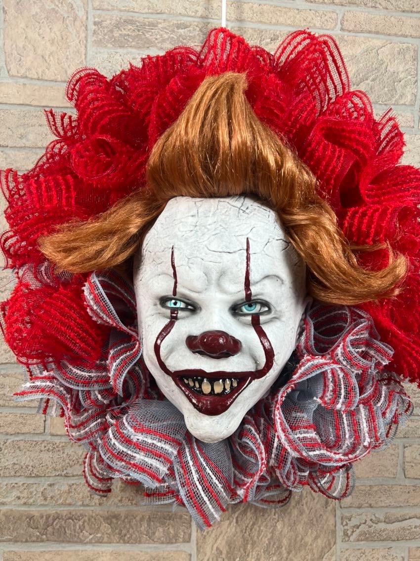 Halloween Wreath Scary Wreath Clown Wreath Halloween Wall Etsy Uk